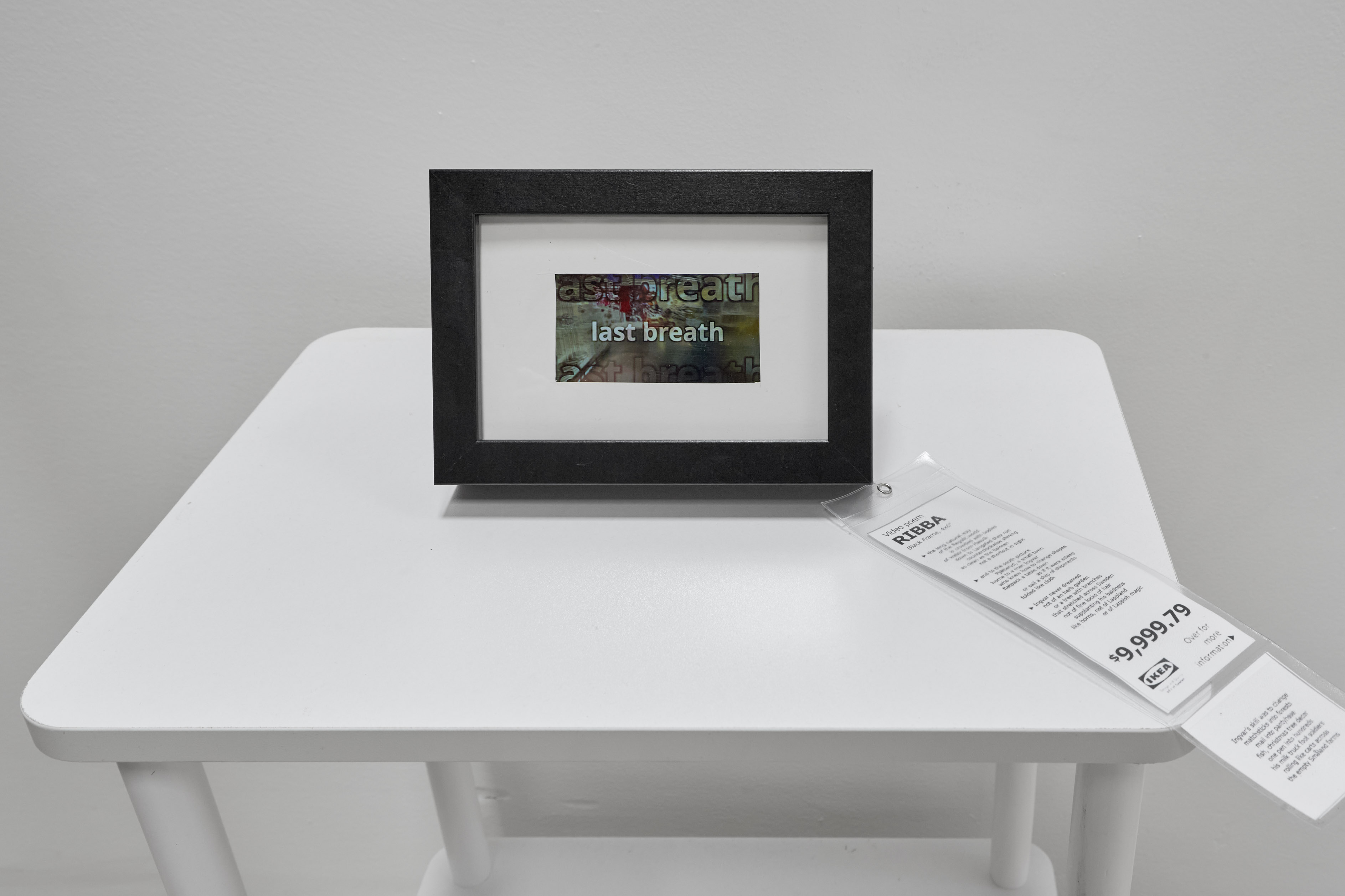 While some covertly showcase their work in the store, others mine the furniture giant’s products, branding ethos, and customer experience for inspiration. Shizuka Kusayanagi envisions an alternate reality sold by a holographic IKEA vase, while Jovi Schnell cuts up and reassembles “LACK” into a pattern that looks like it belongs in an IKEA catalog. Artists incorporated those actively involved with the store into their work, from Rachel Elizabeth Jones’s comprehensive research into IKEA founder Ingvar Kamprad’s vision of the “people’s home,” to Jacky Tran’s redacted zine documenting interviews with employees and customers in which he divulged his real Social Security number.